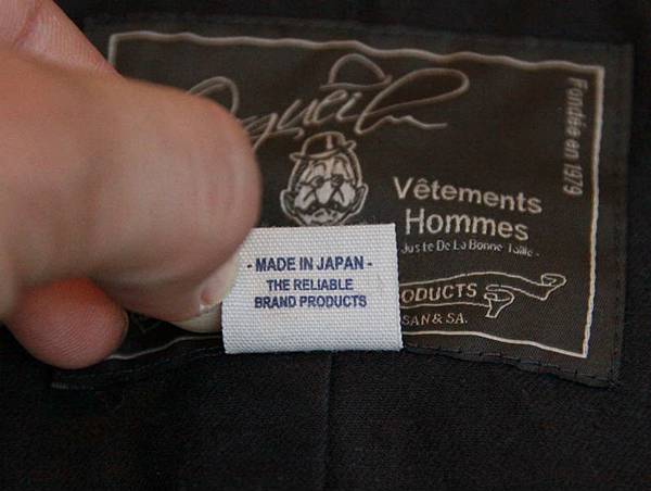 扣子背後用法文刻上品牌字樣,並以線縫在本體上,因此在洗滌上,建議用手洗較不易損壞扣子。