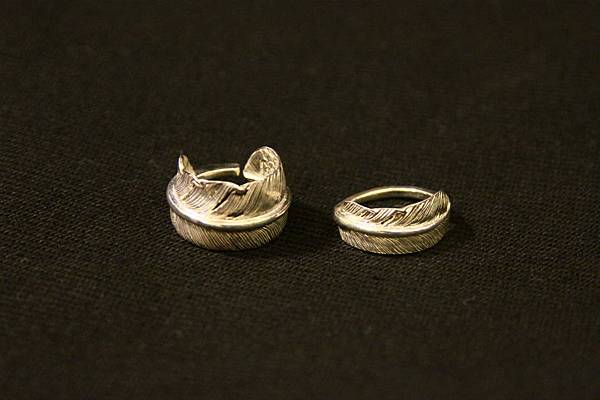 以純熟的手藝將羽毛的紋路逐一敲上,將原本筆直的羽毛敲成圓弧狀的戒指, 此款女性朋友也可以戴喔。