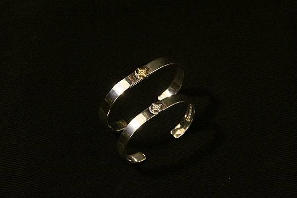 以平打手環加上品牌的LOGO,並有兩種款式18k金及950純銀,此款有 S、L 女性朋友也可以戴喔。