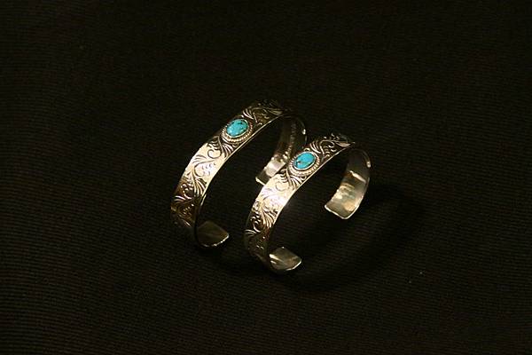 純手工打製唐草圖雕紋路,再加上天然的土耳其石,此款有 S、L 女性朋友也可以戴喔。