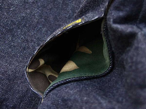 左側口袋的內裡採用迷彩布料,並也縫上 Studio D'artisan Brand Logo。