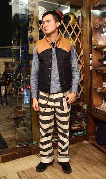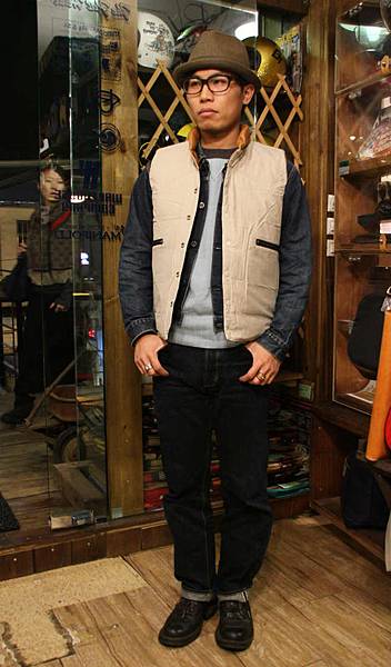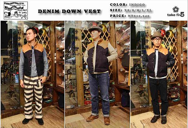 由皮革及丹寧布結合了羽絨背心,以輕量、舒適及保暖作為設計概念,選用柔軟的綿羊皮,著用時使頸部相當舒適,而表面採用丹寧布料,Down Vest 長時間著用會使皮革及丹寧布的色澤逐漸變化,讓人值得期待,而 STUDIO D'ARTISAN 在內裏設計為兩面都能著用,讓使用者有多種穿搭的變化,經典的配色在著用上並不用擔心穿搭的困難,如圖所示範以自已的喜好去著用,並保有濃厚的美式風格,正在找 Down Vest 的歡迎來到店裡是試穿,謝謝。