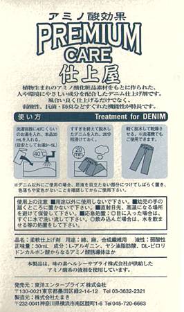 從職人手持牛仔褲洗滌的圖片中就可以看出這是完全針對牛仔褲來開發的清潔劑,右邊註明著“色落本位“也代表著就算是對於養色效果非常苛求的同好,也可以放心地使用!