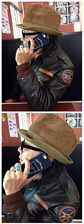 社長 Benny 親自示範:穿上深色的軍事外套,並不會感到手機不適合的配色效果,配戴起來相當的顯眼還突顯出品牌的圖樣。