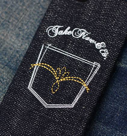 Take5 生產兩種款樣式,設計出 Take5 品牌 LOGO 及 Take5 後口袋車縫圖樣。