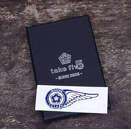 贈附銀色品牌字樣的包裝盒及 Take5 貼紙。