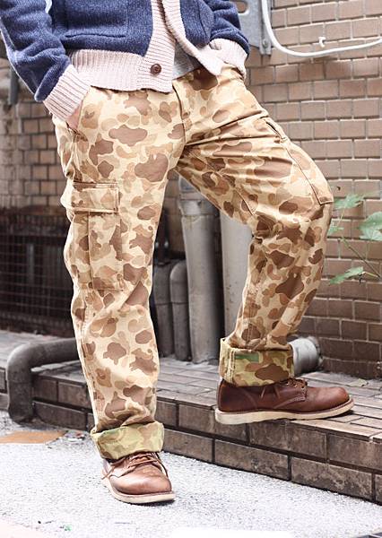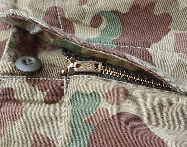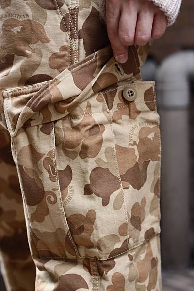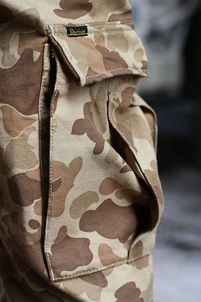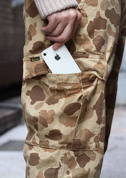 整件褲子最特別的就是 STUDIO D'ARTISAN 獨家開發出的“小豬迷彩“布料了,將發源於1940年代的 DUCK HUNTER CAMO(獵鴨斑迷彩)改成充滿自家風格的花色,你能從照片中找到幾隻可愛的小豬呢?