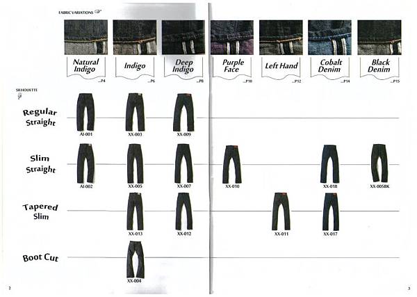 p.b.j 的版型區分並不複雜,只有作出一般直筒(REGULAR STRAIGHT)、合身直筒(SLIM STRAIGHT)、錐形窄身(TAPERED SLIM)與靴型褲(BOOT CUT)等四種款式,搭配他們最引以為傲的多種布料,大家可以從上圖清楚地瞭解他們的定番褲型分類。
