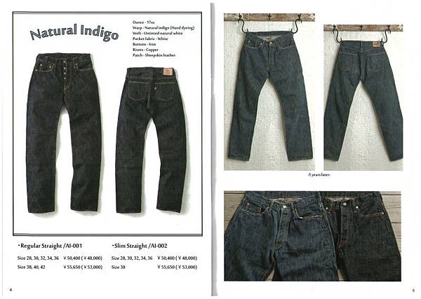 由17oz NATURAL INDIGO 布料所製作的 AI-001,AI-002 可說是 pure blue japan 的招牌作品,以手染(HAND DYEING)所染製的100%天然染布料,加上鐵質主排扣、紅銅卯釘與山羊皮標等細節,是集 p.b.j 技術於大成的代表之作!