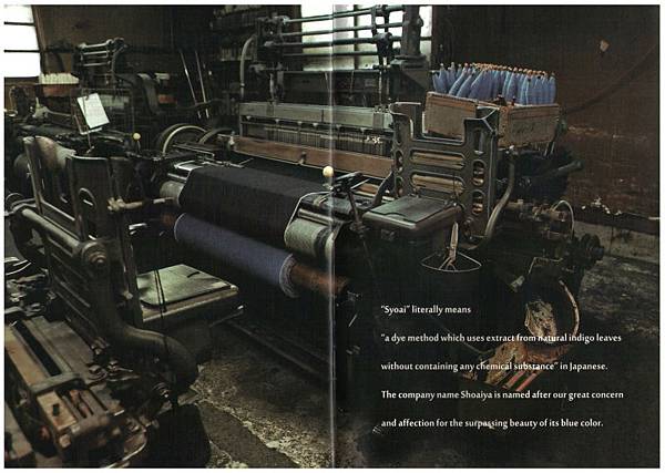 對INDIGO藍染及老式力織機等傳統做法相當堅持的岩谷先生,在他一手創立的 SYOAIYA(藍布屋) 裡,至今仍採用50年代的老式力織機來生產布料,這種生產速度緩慢、布幅寬度更只有31英吋,在此嚴謹製程下所織出的布料尤其珍貴,因此 pure blue japan 格外重視每一匹布、是否能夠以最優異的車工製作,來完成他們理想中的 pure blue japan jeans!
