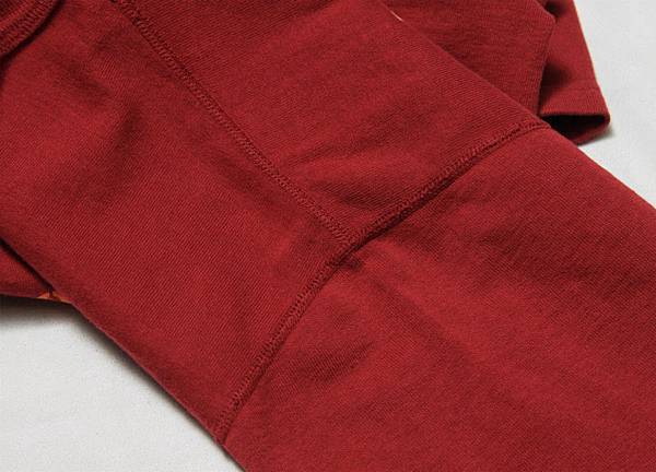 在肩上部分踩用老式做法『四本針拷克』製作,使上衣更加堅固,與其他 T-shirt 做出區別。