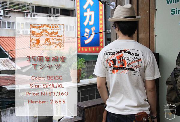 今年已滿35歲的 Studio D'artisan,釋放了2014新品限定商品,為了慶祝這難得的時刻,特別採取『和歌山吊掛式力力織機』製作了厚實的 T-shirt,在胸前設計出簡潔的字樣,而背後設計出品牌 Logo 辨識度相當的明顯。這款單品在日本相當的ㄕ受歡迎,官網只剩下 XL 尺寸其他已販售完。店內有引進兩款顏色,歡迎的朋友,歡迎還店內試穿選購喔!